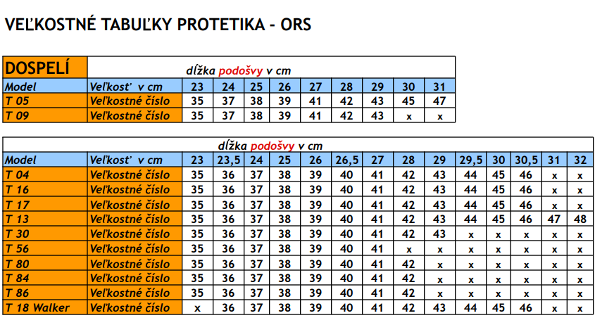 PROTETIKA Orthopedic tvorí podošva so stielkou kompaktný anatomicky tvarovaný výlisok. Pozor na špeciálne číslovanie v centimetroch: Veľkostná tabuľka rehabilitačných sandál PROTETIKA neuvádza dĺžku stielky, ale dĺžku podošvy. Miesto pre chodidlo je len vo vnútri výlisku. Chodidlo nemá zasahovať na vyvýšené okraje. Vyberte si preto veľkostné číslo, ktoré má podošvu minimálne o 1 cm väčšiu ako je dĺžka chodidla. Zdravotné prvky (lôžko pre pätu, podpora klenby chodidla a oddeľovače prstov) tak budú pôsobiť na správnom mieste.
