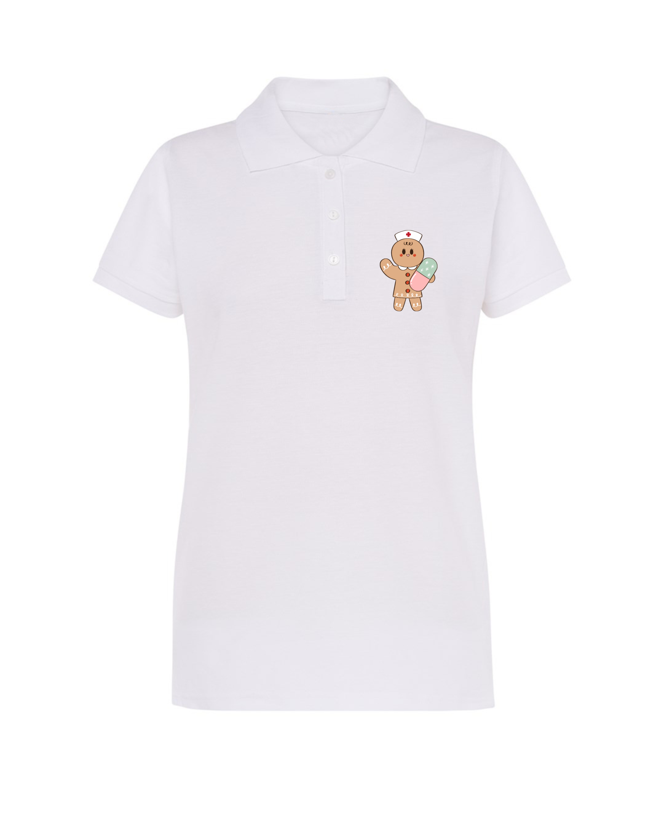 Dámska vianočná polokošeľa s potlačou perníka s tabletkou v ruke - humorný motív pre zdravotníčky.