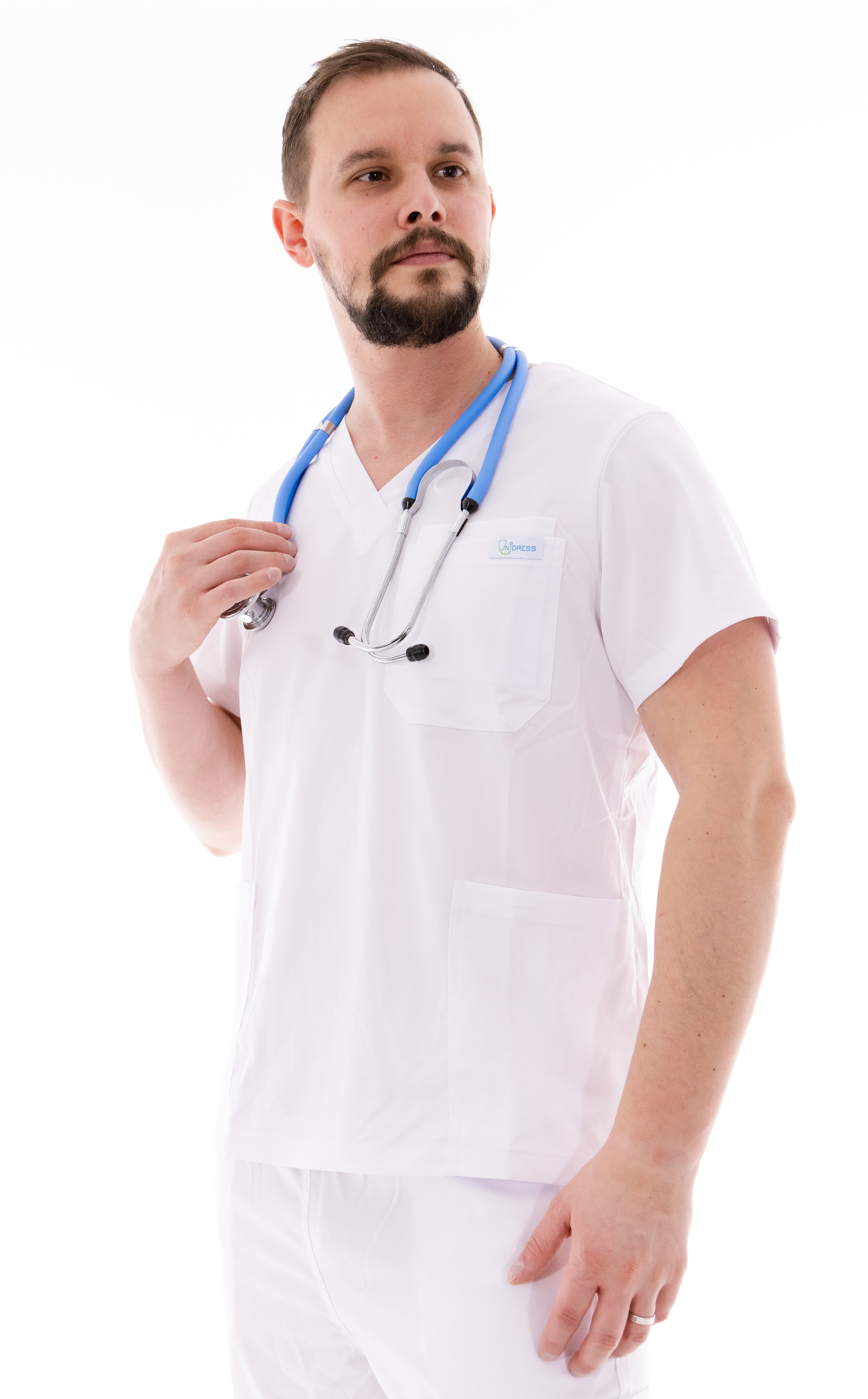 Vďaka univerzálnemu dizajnu je blúzka vhodná ako pre lekárov, sestry, sanitárov, fyzioterapeutov, tak aj pre personál v kozmetických alebo wellness prevádzkach.