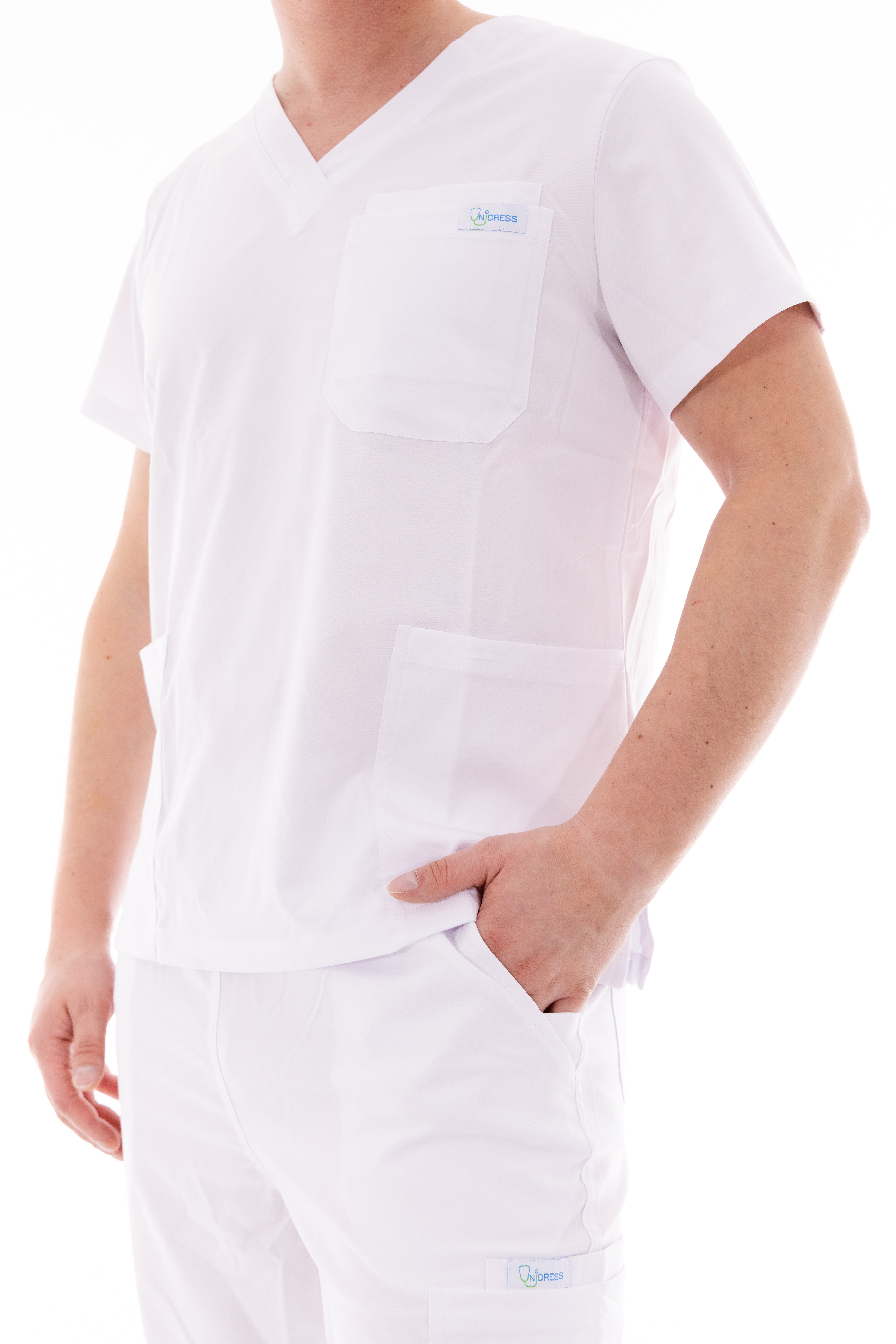 Unisex zdravotnícka blúzka UNIDRESS biela pracovná tunika pre zdravotníkov.