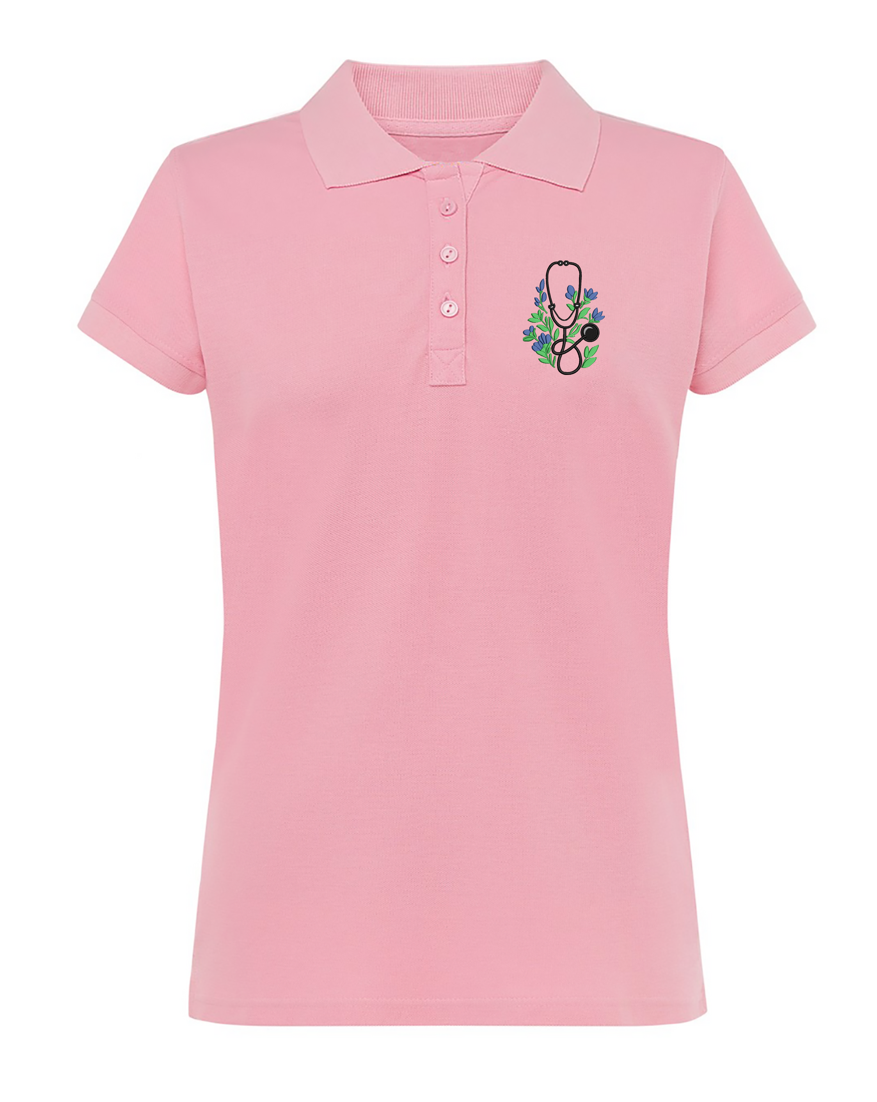 Dámska zdravotnícka polokošeľa s výšivkou rozkvitnutého fonendoskopu.